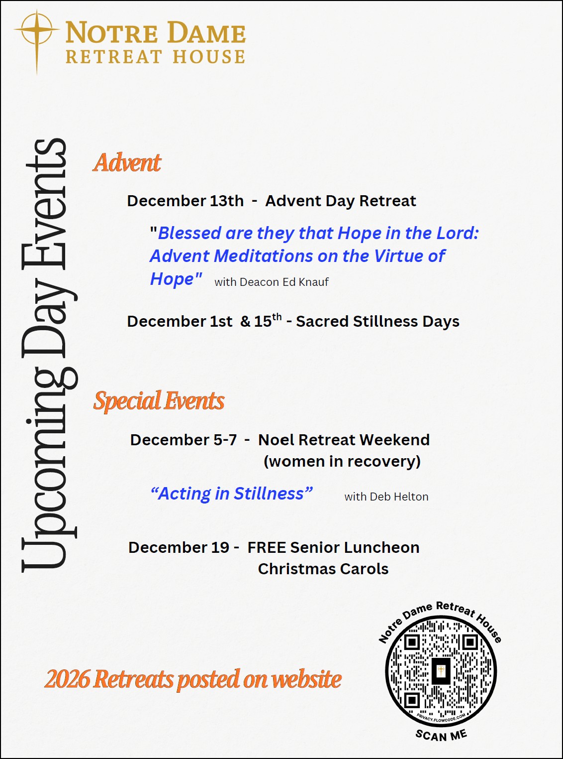 Contact for More Information: Nancy Lynch Email: info@notredameretreat.org