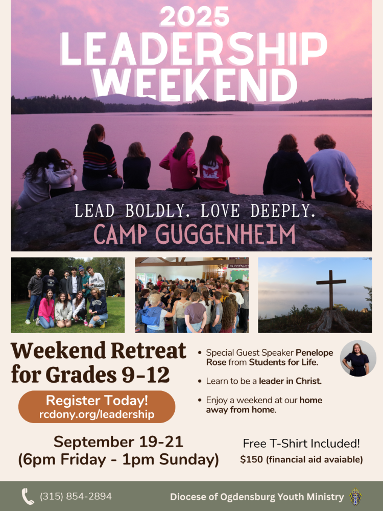 St. John Paul II said, “Dear young people, let yourselves be taken over by the light of Christ, and spread that light wherever you are.” As youth ministry is developed throughout the Diocese of Ogdensburg, both through diocesan-sponsored events and local youth ministry events, our hope is that young people will continually be taken over by the light of Christ and spread that light.